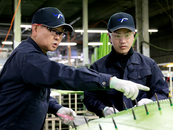 OJT研修で丁寧に教育を行い社員の成長を支援しています。また、金属加工や組み立てなどプロの技能を要する手仕事が中心である当社では、匠の技を持つ熟練者による細やかな指導により、未経験からの挑戦でも優れた技能を身につけることが可能です。世界をつなぐ航空機の部品製造を通じて、暮らしを支える飛行機をつくる“誇り”と“やりがい”を感じられるのは、この仕事の大きな魅力です。